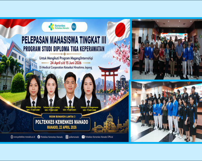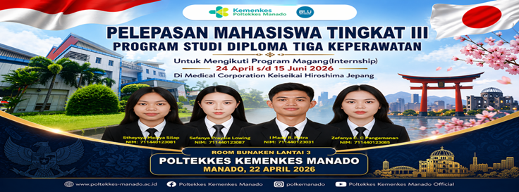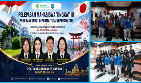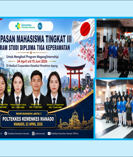 Jurkeppolkesdo.my.id-Poltekkes Kemenkes Manado secara resmi melepas empat mahasiswa Tingkat III Program Studi Diploma Tiga Keperawatan untuk mengikuti program magang (internship) di Jepang. Kegiatan