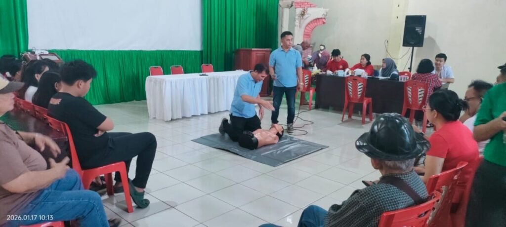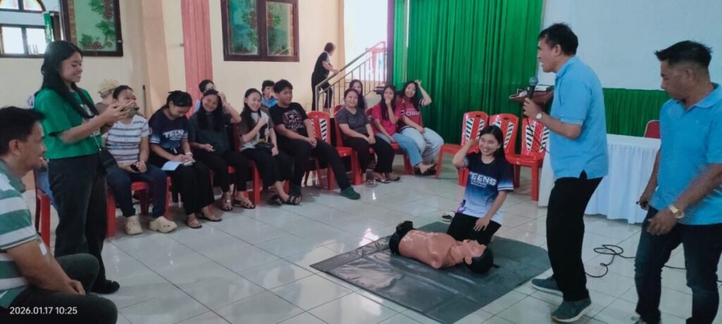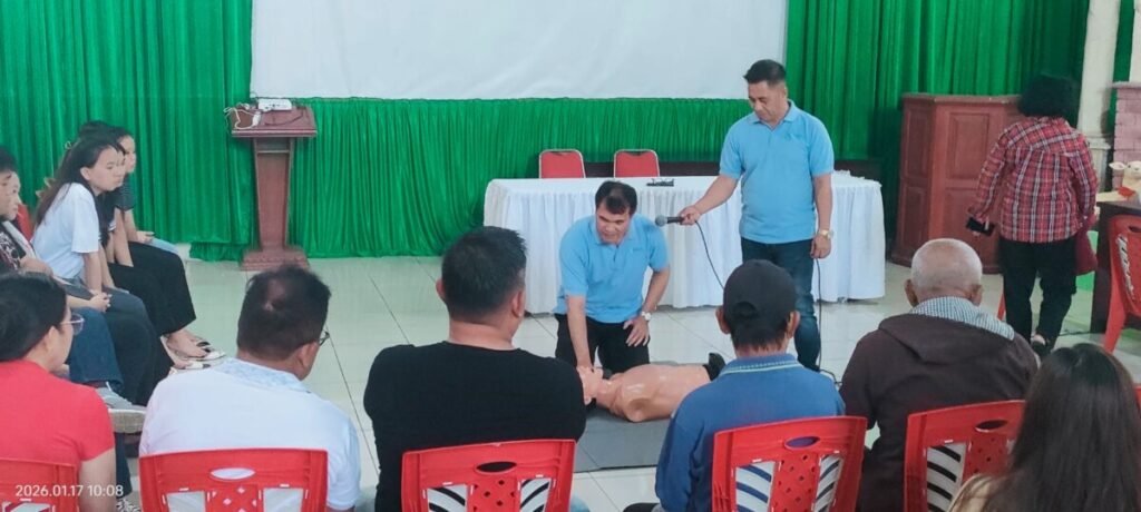 Kegiatan Pengabmas mandiri ini dipimpin oleh Sekretaris Jurusan Keperawatan Poltekkes Kemenkes Manado, Bapak Ns. Maykel A. Kiling, S.Pd,S.Kep,M.Kep, yang mewakili Ketua Jurusan Keperawatan. Dalam kesempatan tersebut, Bapak Maykel Kiliing juga mengambil peran langsung sebagai narasumber edukasi Bantuan Hidup Dasar (BHD) dan memandu praktik BHD bagi peserta sebagai upaya meningkatkan kesiapsiagaan masyarakat dalam menghadapi situasi kegawatdaruratan.