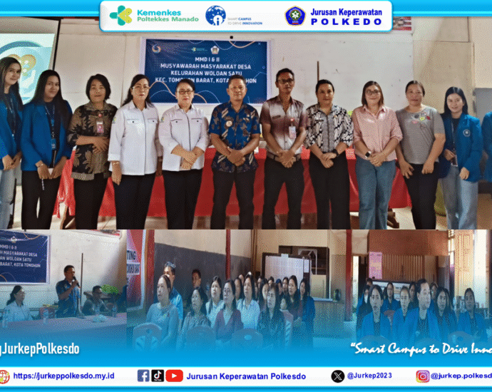 Tomohon Barat, 8 Mei 2025 — Mahasiswa Program Studi Profesi Ners Poltekkes Kemenkes Manado melaksanakan kegiatan Musyawarah Masyarakat Desa (MMD) Satu di Gedung Pemerintahan Kelurahan Woloan Satu, Kecamatan Tomohon Barat, Kota Tomohon, Kamis (8/5/2025). Kegiatan ini merupakan bagian dari rangkaian Praktek Stase Keperawatan Komunitas dan Keluarga yang dilaksanakan sejak 28Continue Reading