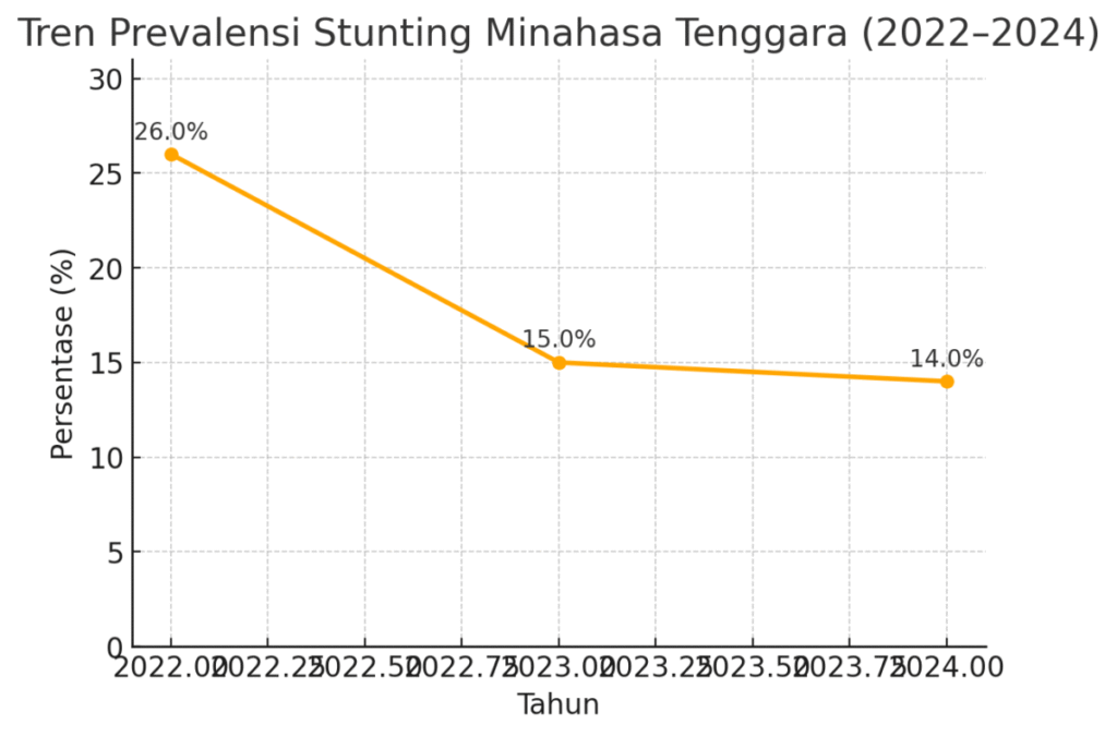 Stunting masih menjadi salah satu masalah gizi yang perlu mendapat perhatian di Sulawesi Utara, termasuk Minahasa Tenggara. Berdasarkan data Dinas Kesehatan Provinsi Sulawesi Utara, prevalensi stunting di provinsi ini tercatat 21,3 % pada 2023, sedikit meningkat dari 20,5 % pada 2022.