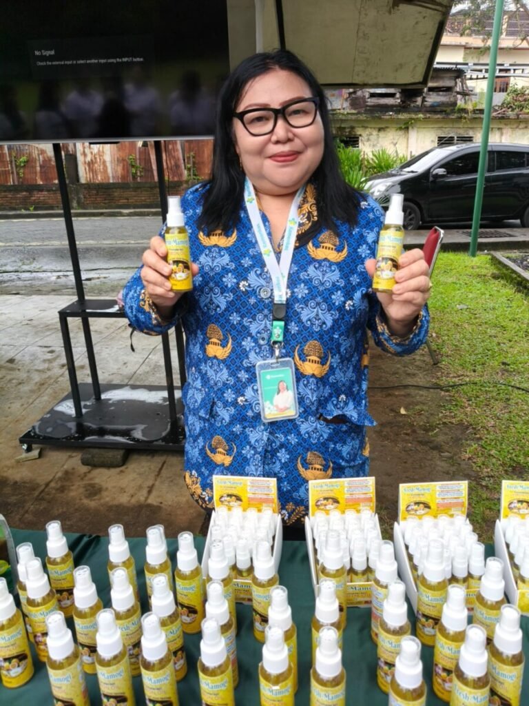 Salah satu produk unggulan yang diluncurkan dalam kegiatan tersebut adalah Fresh Momogi, produk minyak aromaterapi yang dikembangkan oleh dosen Jurusan Keperawatan Poltekkes Kemenkes Manado, yaitu Ellen Pesak, S. Kep, Ners, M.Kes bersama tim peneliti.